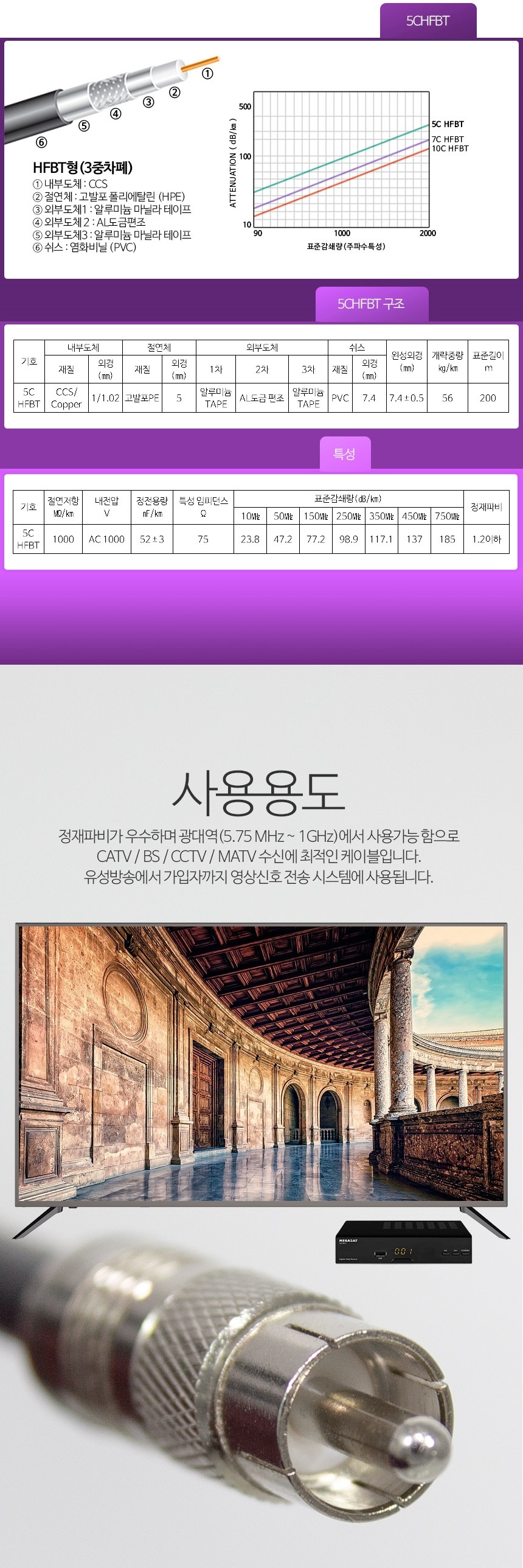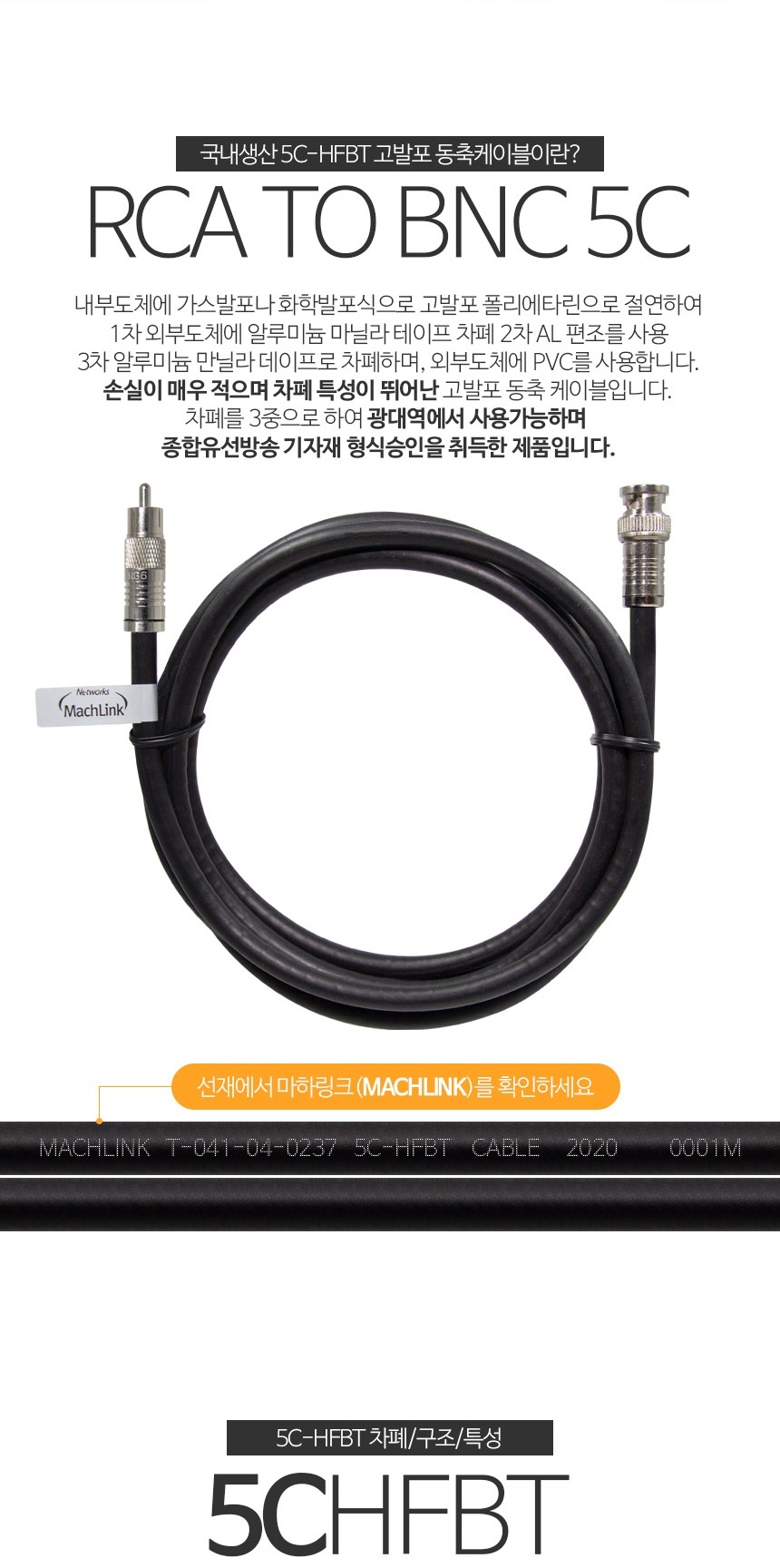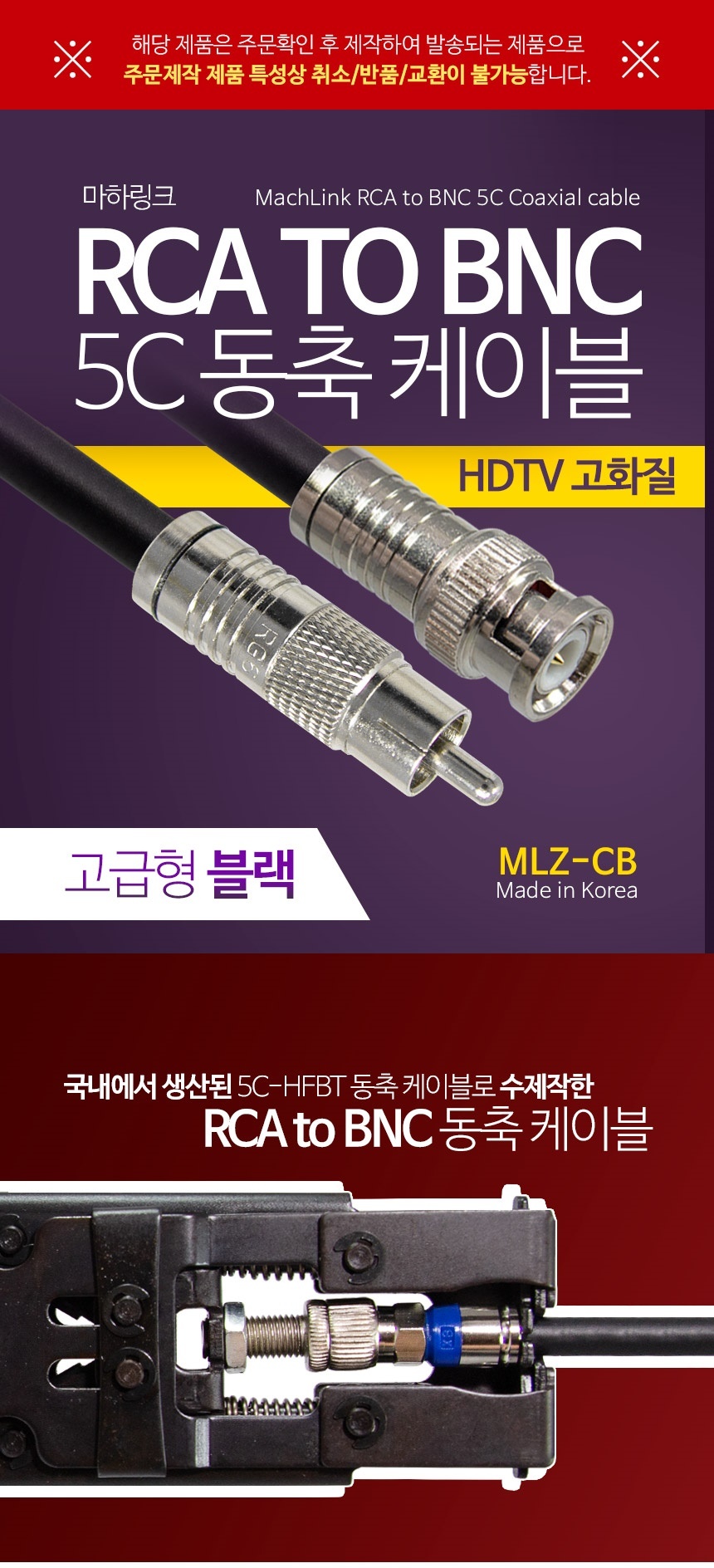 마하링크 국산 고급형 RCA TO BNC 5C 동축 케이블 10M MLZ-CB100