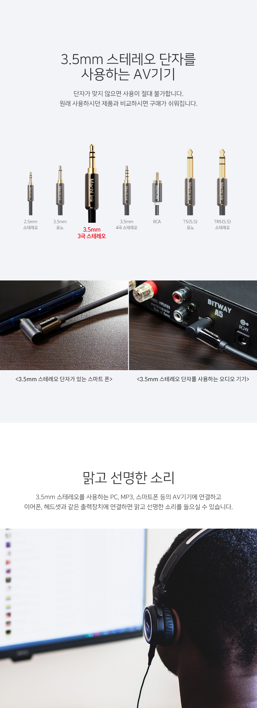 3극 3.5mm 스테레오 고급형 연장 꺽임 Y 케이블 15CM ML-TSYH015