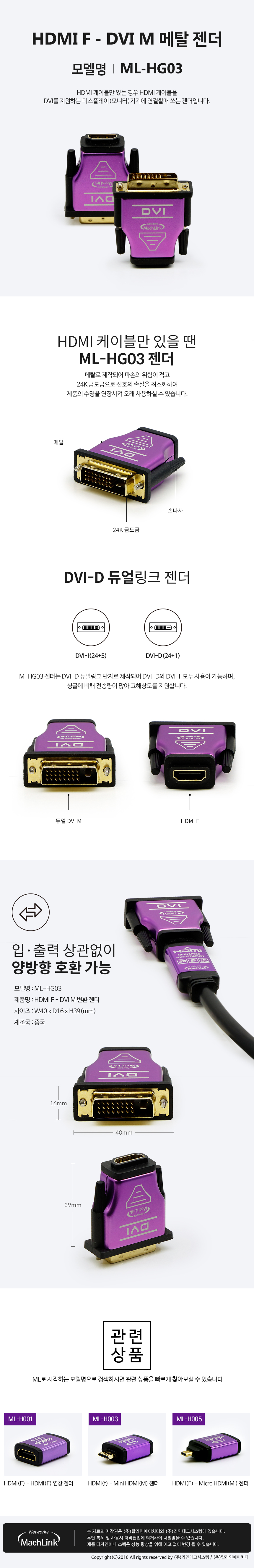 마하링크 HDMI 암 to DVI 수 F/M 메탈 변환 젠더 ML-HG03