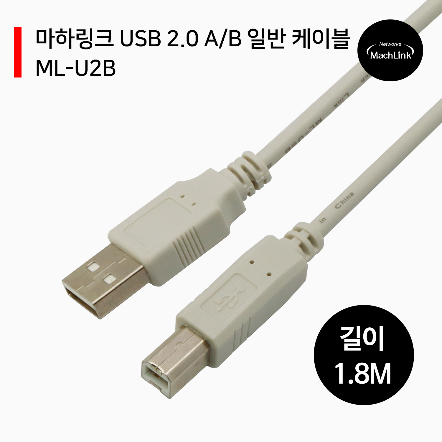 마하링크 USB 2.0 A/B 일반 케이블 1.8M ML-U2B018