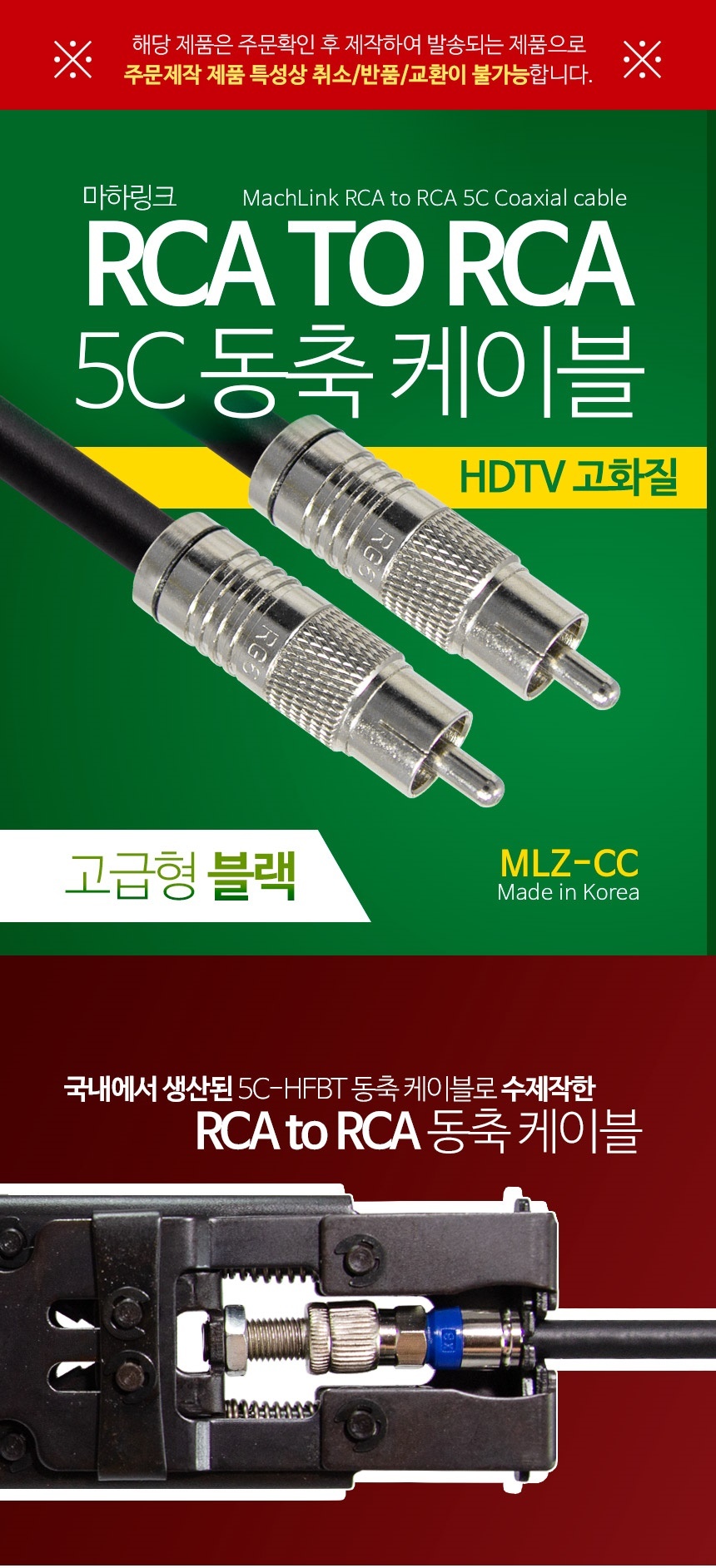 마하링크 국산 고급형 RCA 5C 동축 케이블 15M MLZ-CC150