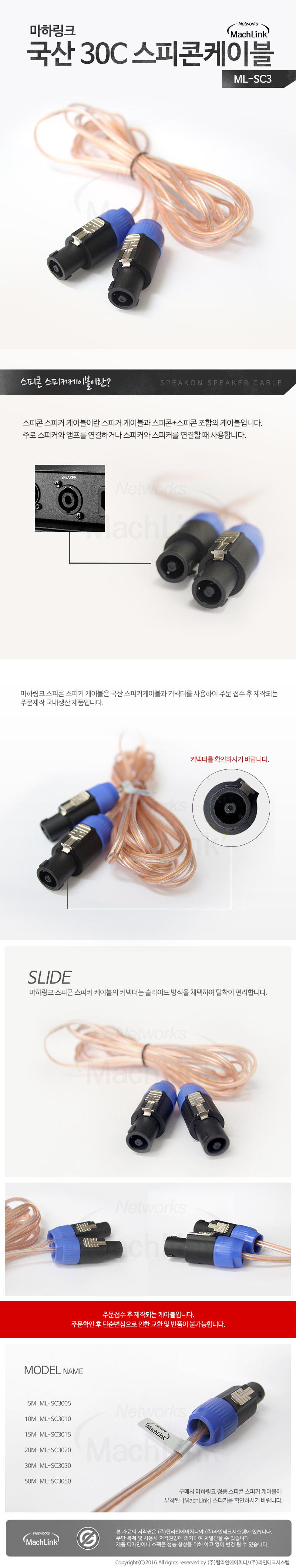 마하링크 국산 스피콘 30C 스피커케이블 5M ML-SC3005