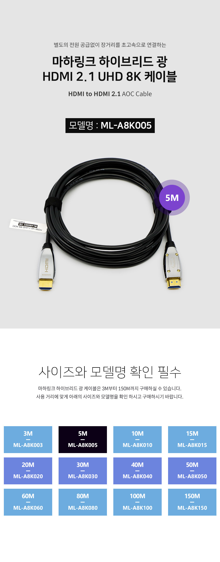 마하링크 하이브리드 광 Ultra HDMI Ver2.1 8K AOC케이블 5M ML-A8K005