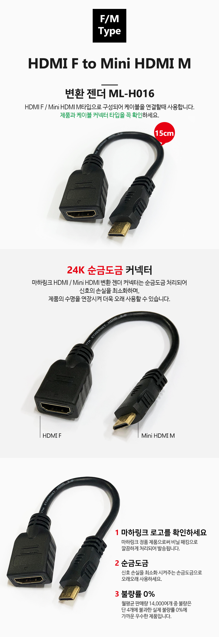 마하링크 HDMI to MINI HDMI F/M 젠더 15CM ML-H016