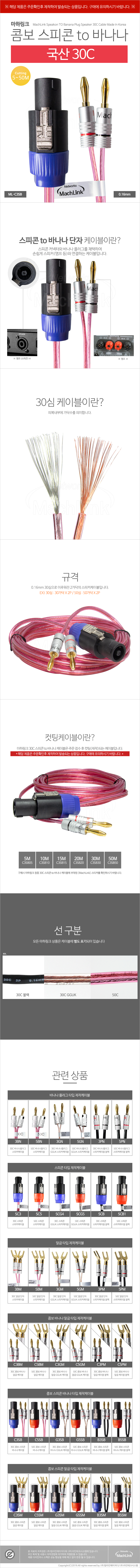 국산 30C 콤보 스피콘 TO 바나나 케이블 50M ML-C3SB50