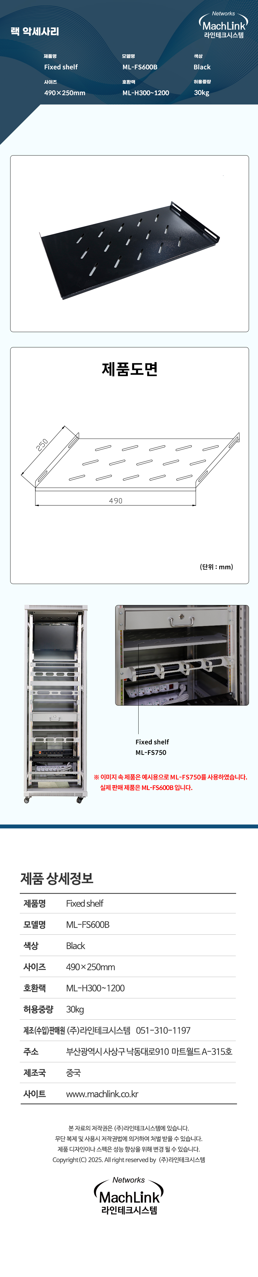 마하링크 고정 선반 블랙 ML-H300~1200용 ML-FS600B