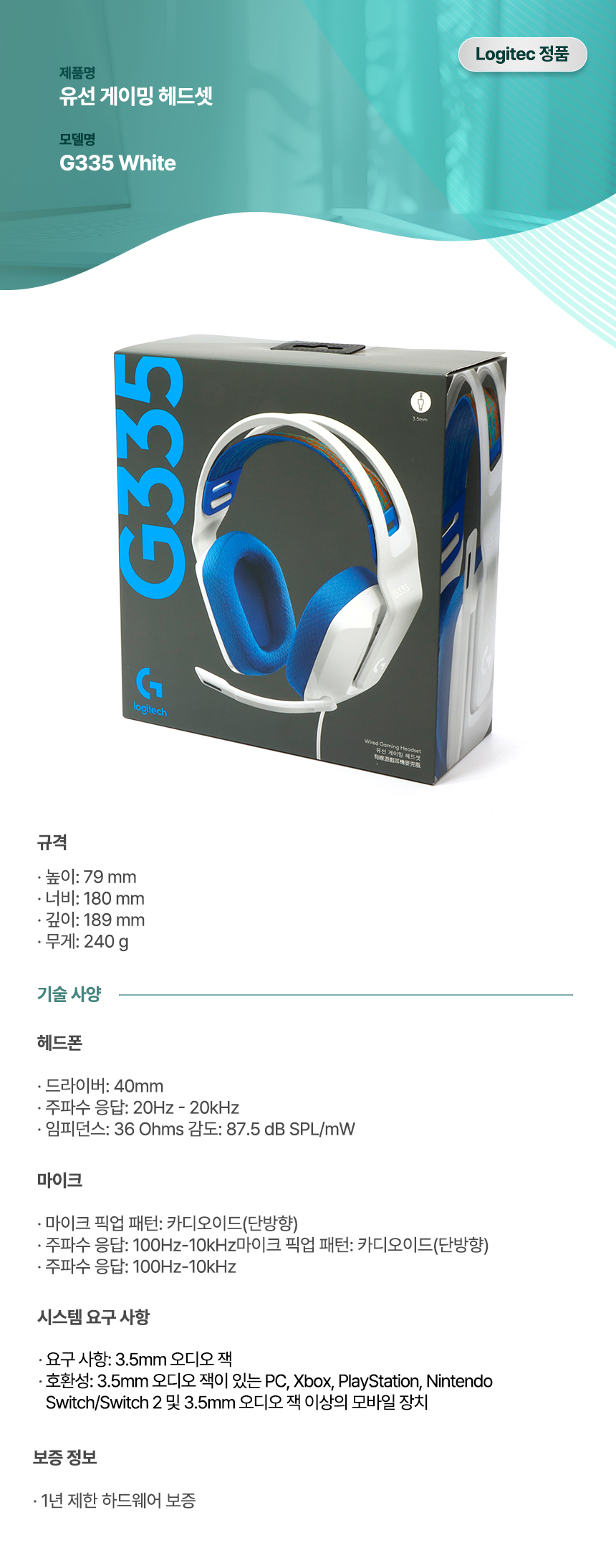 HOME > 파트너 브랜드 > 로지텍 > 유선 게이밍 헤드셋 G335 White