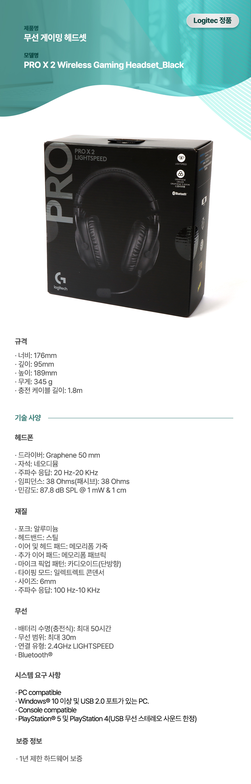 HOME > 파트너 브랜드 > 로지텍 > 무선 게이밍 헤드셋 PRO X 2 Wireless Gaming Headset_Black