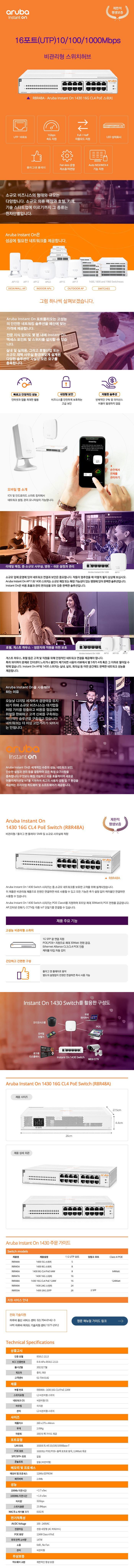 HOME > 파트너 브랜드 > 아루바 > HPE 아루바 Instant On 1430 16G CL4 PoE 124W 스위칭허브 R8R48A