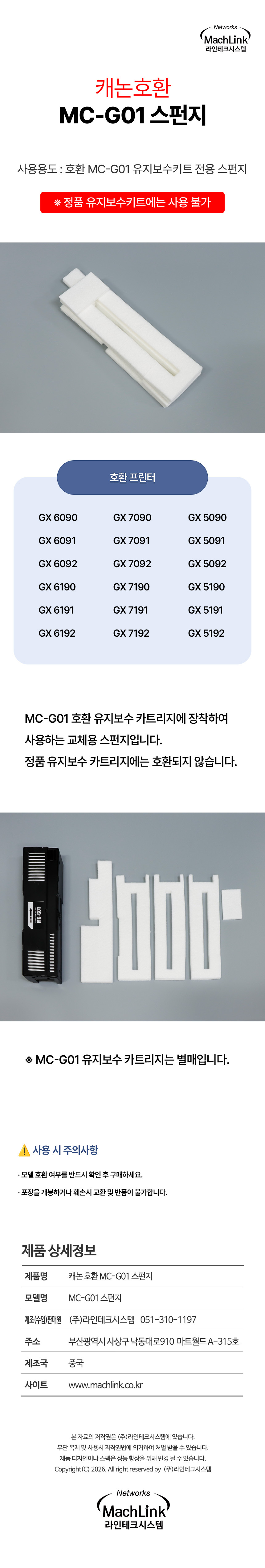 캐논호환 MC-G01 스폰지 호환유지보수키트용
