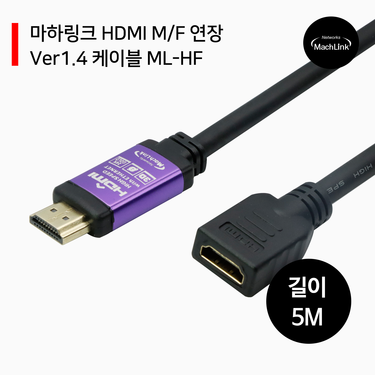 HOME > HDMI케이블 > HDMI 연장 > HDMI 연장 1.4 > 마하링크 HDMI M/F 연장 Ver1.4 케이블 5M ML-HF050